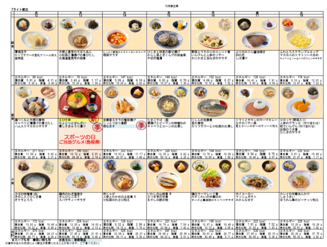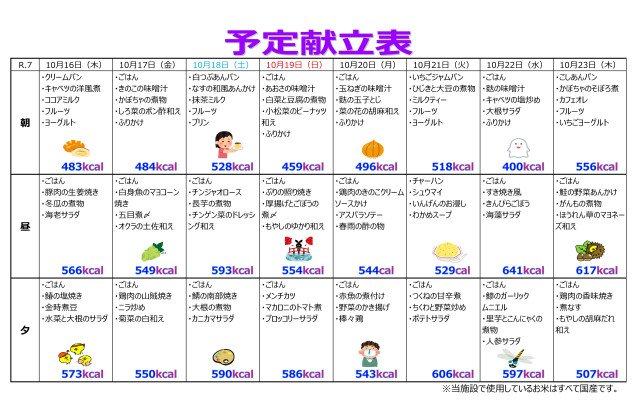 特養・ショートステイ令和7年10月16日~31日の献立です。