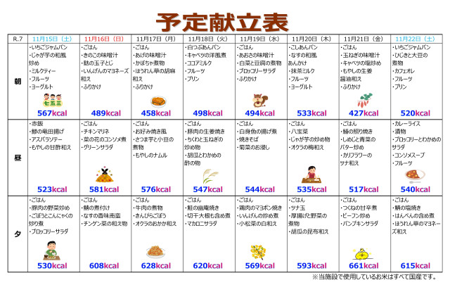 特養ええな~! 0特養・ショートステイ 令和7年11月15日~30日の献立 -