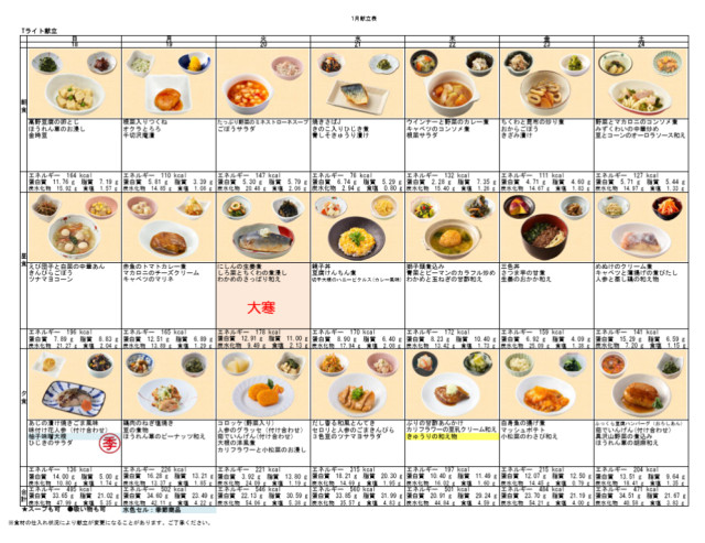 特養ええな~! 10特養・ショートステイ 令和8年1月16日~31日の献立 -