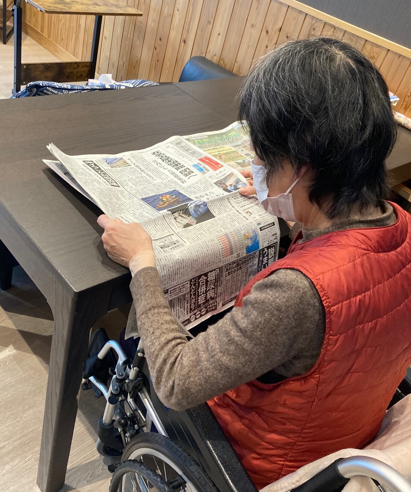 ショートステイ翠風(suifu) 日課( ◠‿◠ ) 執筆者: こはくユニット ケアワーカー 日時: 2026/04/11 熱心に新聞を読まれています(*^-^*) この記事に対して・・・ 2 人が「ええな~!」 と言っています。 #日中の過ごし方 一覧へ戻る