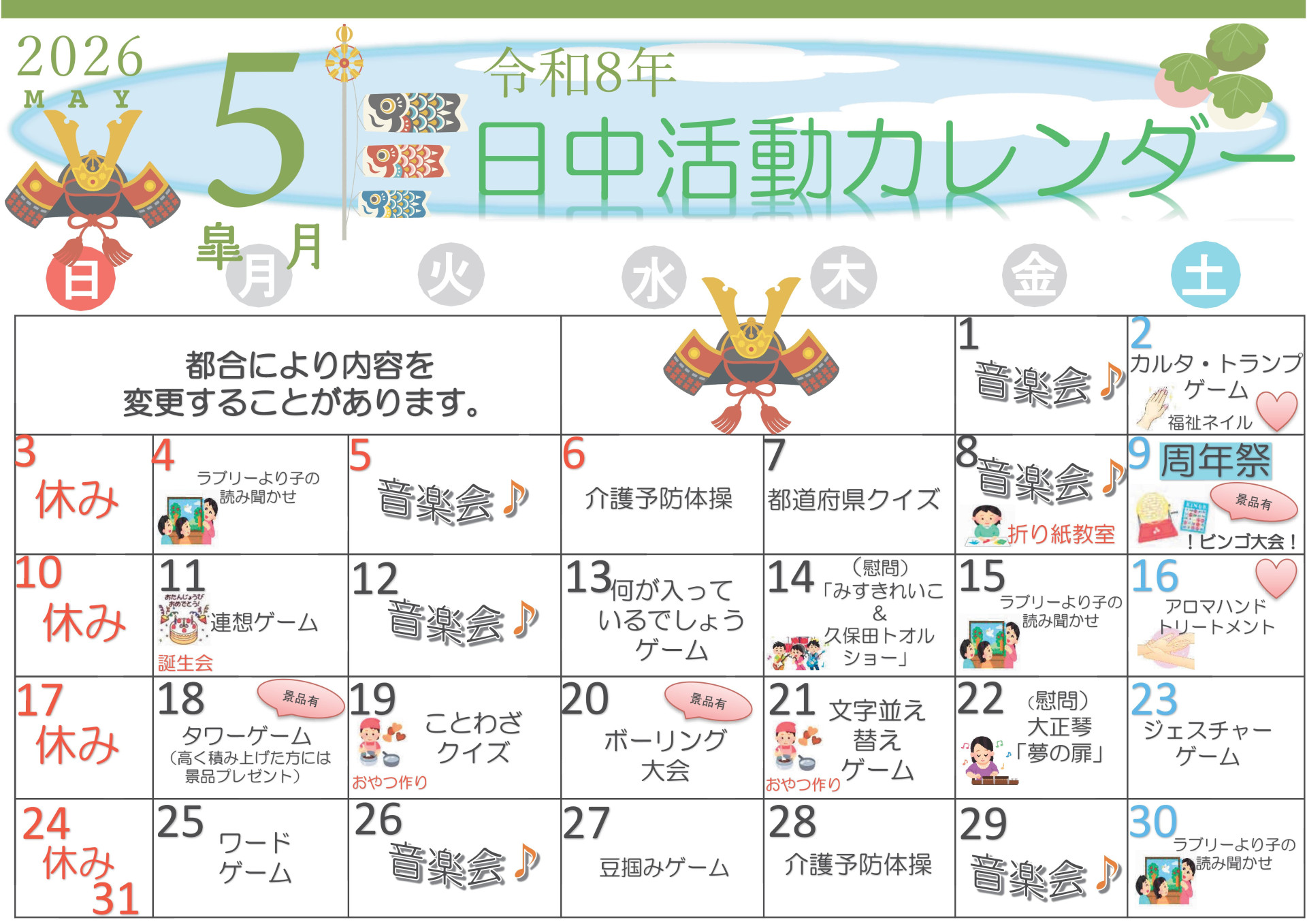 令和8年 5月のアクティビティカレンダー