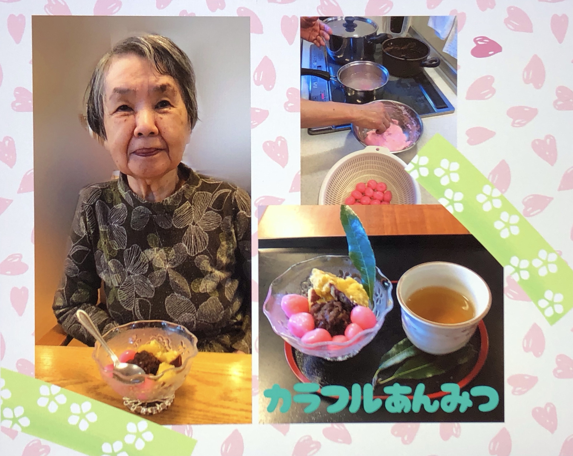 悠々グループホーム 手作りおやつ 執筆者: グループホーム悠々 介護職員 日時: 2026/04/16 カラフルあんみつを作りました*。 みなさん"美味しい〜☺︎"と好評でした♪ この記事に対して・・・ 0 人が「ええな~!」 と言っています。 #悠々手作りおやつ 一覧へ戻る