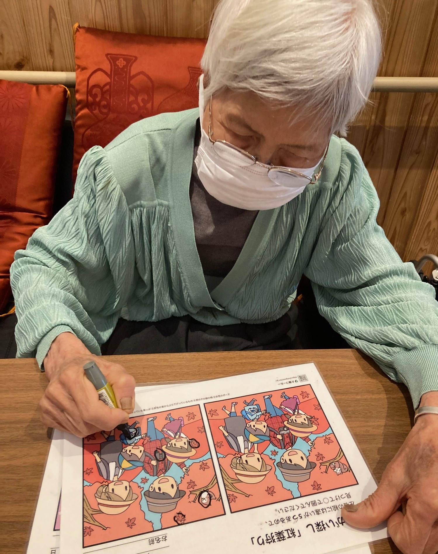 ショートステイ翠風(suifu) 間違い探し 執筆者: ショートステイ翠風 ケアワーカー 日時: 2026/04/23 集中して取り組まれています(*^。^*) この記事に対して・・・ 2 人が「ええな~!」 と言っています。 #日中の過ごし方 一覧へ戻る