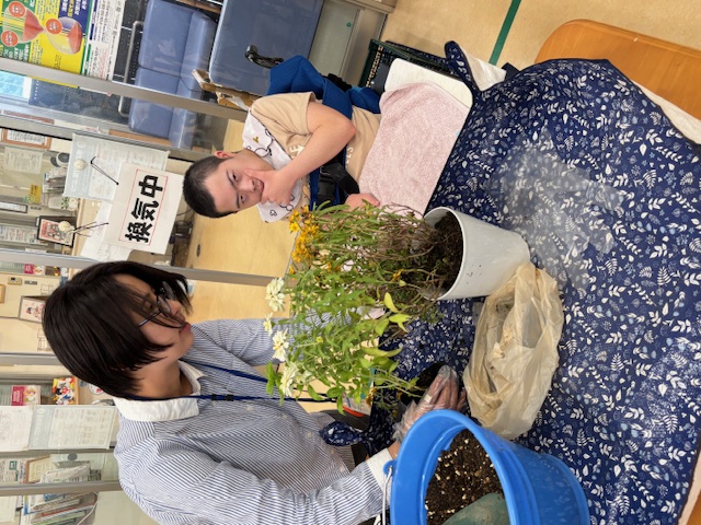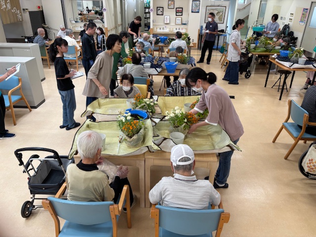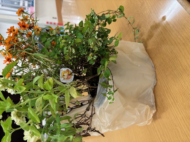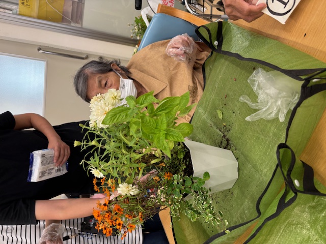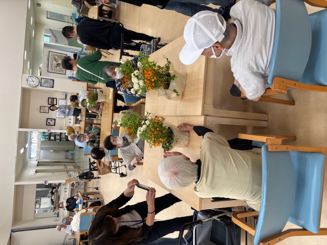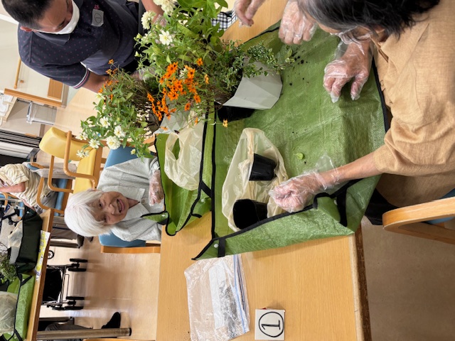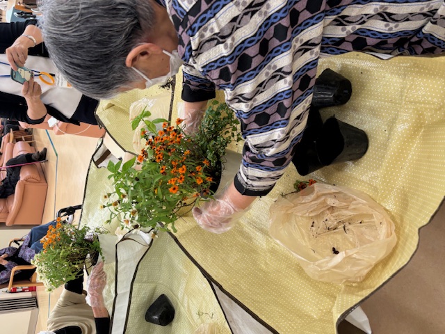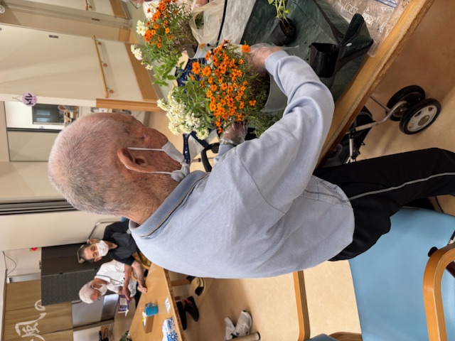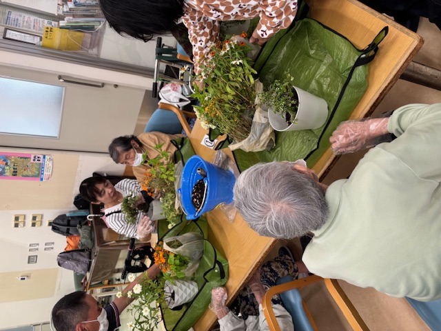 ご利用者様5名・職員様4名に訪問いただきデイサービス利用者様と花の寄せ植えを一緒に作りました。