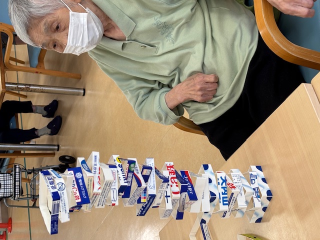 デイサービスセンター レクリエーション 執筆者: 栄養士 日時: 2025/10/06 お昼から、『タワーゲーム』をしました。大小様々な牛乳パックを絶妙なバランスで積んでみえました∑(゚Д゚)職員もマネできないですね!楽しいひとときでした٩(๑❛ᴗ❛๑)۶ この記事に対して・・・ 10 人が「ええな~!」 と言っています。 #レクリエーション 一覧へ戻る