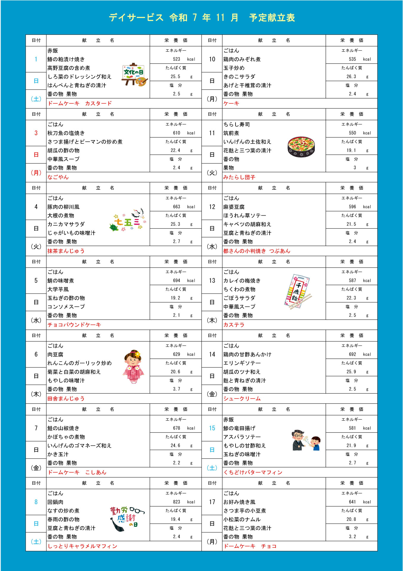 今月は秋刀魚やきのこごはん、大学芋風など、秋らしい味覚をお楽しみいただけます(*^-^*)