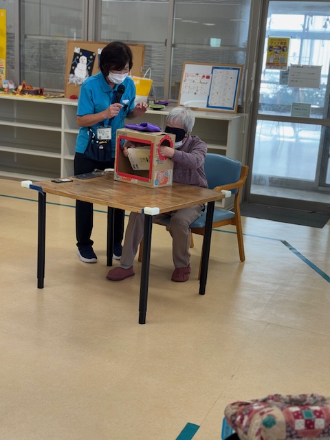 目隠しをして、箱の中に入っている物を当てて頂くゲームです!