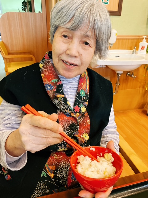 先日収穫したさつまいもで芋ごはんを炊きました(*'▽')