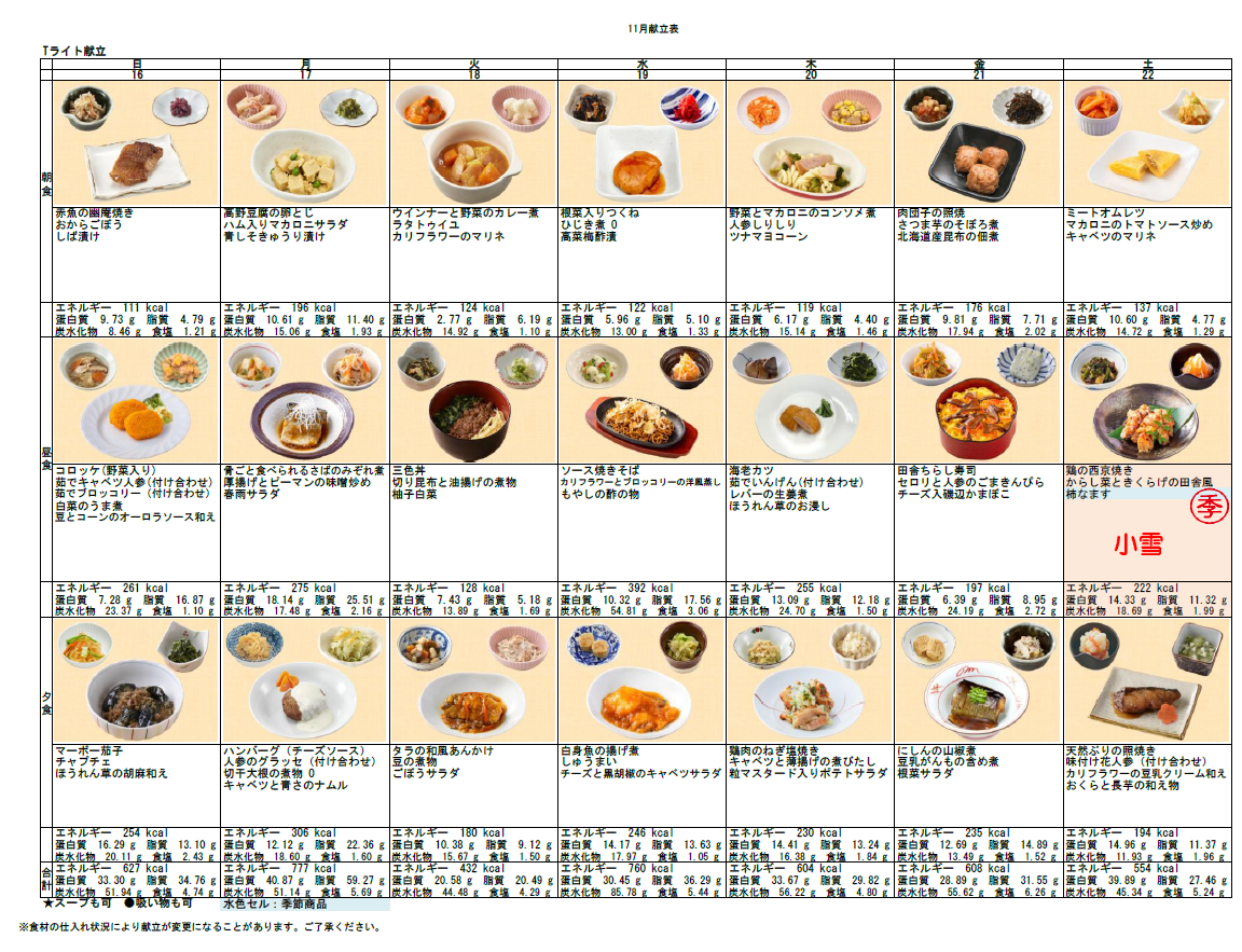 悠々グループホーム 今週の献立 執筆者: グループホーム悠々 介護職員 日時: 2025/11/17 今週は『コロッケ』や『三色丼』、『ソース焼きそば』など 当施設の人気メニュー満載です♪*. この記事に対して・・・ 1 人が「ええな~!」 と言っています。 #今週の献立 一覧へ戻る