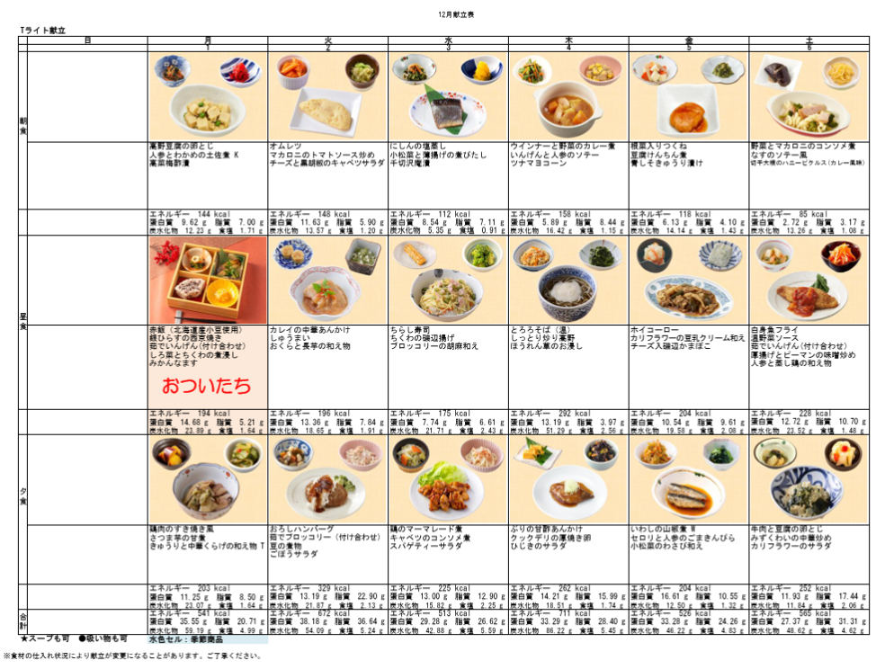 悠々グループホーム 12月・今週の献立 執筆者: グループホーム悠々 介護職員 日時: 2025/12/01 3日昼食は『ちらし寿司』、当施設の人気メニューです♪*. この記事に対して・・・ 2 人が「ええな~!」 と言っています。 #今月・今週の献立 一覧へ戻る