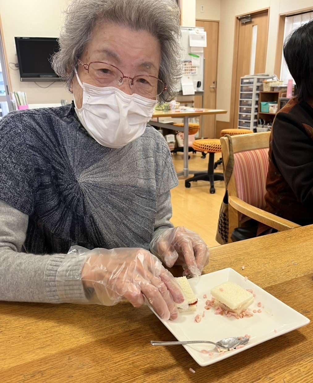 特養(特別養護老人ホーム) DS悠々 今日のおやつづくり 執筆者: グループホーム悠々 介護職員 日時: 2025/12/05 サンドイッチを作りました。 美味しく出来上がりました。 この記事に対して・・・ 2 人が「ええな~!」 と言っています。 一覧へ戻る