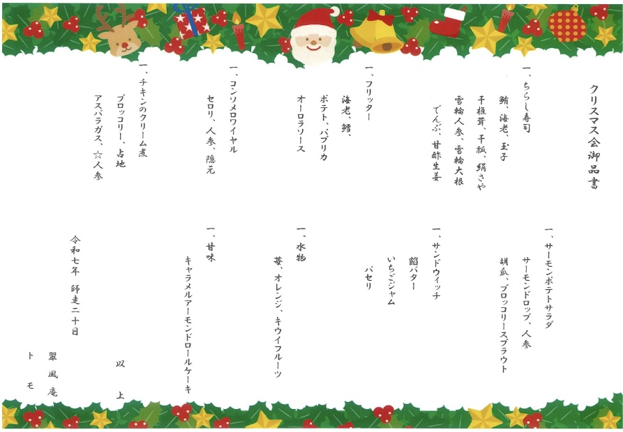 行事食ならではの華やかな献立に、利用者様にも大変喜んでいただけました☺