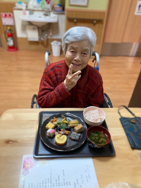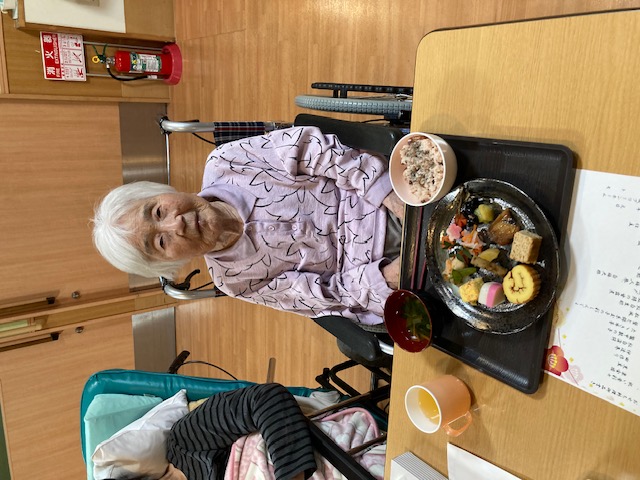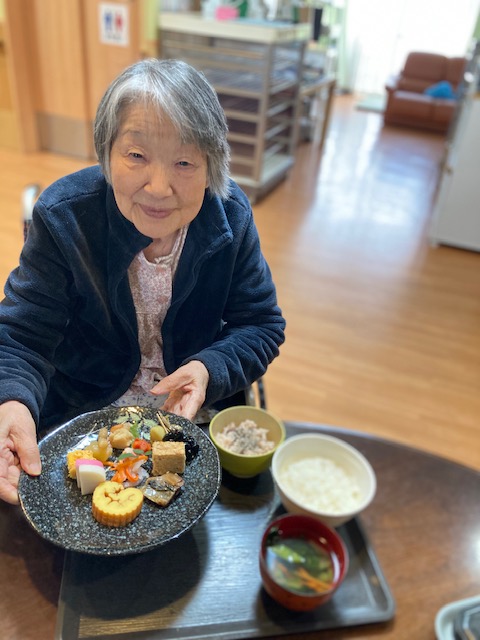 特養(特別養護老人ホーム) おせち料理 執筆者: けやきユニット ケアワーカー 日時: 2026/01/01 本日の昼食は「おせち料理」です 皆様『ご馳走やな!美味しいわ』 素敵な新年ですね 本年も宜しくお願いします この記事に対して・・・ 3 人が「ええな~!」 と言っています。 #おせち料理 #けやきユニット #新年 一覧へ戻る