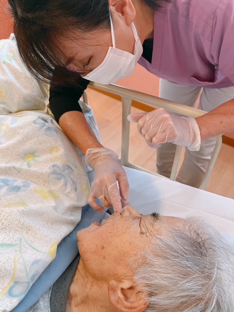 特養(特別養護老人ホーム) 歯科衛生士の事例研修(R8/1/19) 執筆者: さくら・けやきユニット ケアワーカー 日時: 2026/01/19 歯科衛生士に口腔内の観察・指導をしてもらいました。 この記事に対して・・・ 2 人が「ええな~!」 と言っています。 #口腔 #歯 #歯科衛生士 #特養 一覧へ戻る