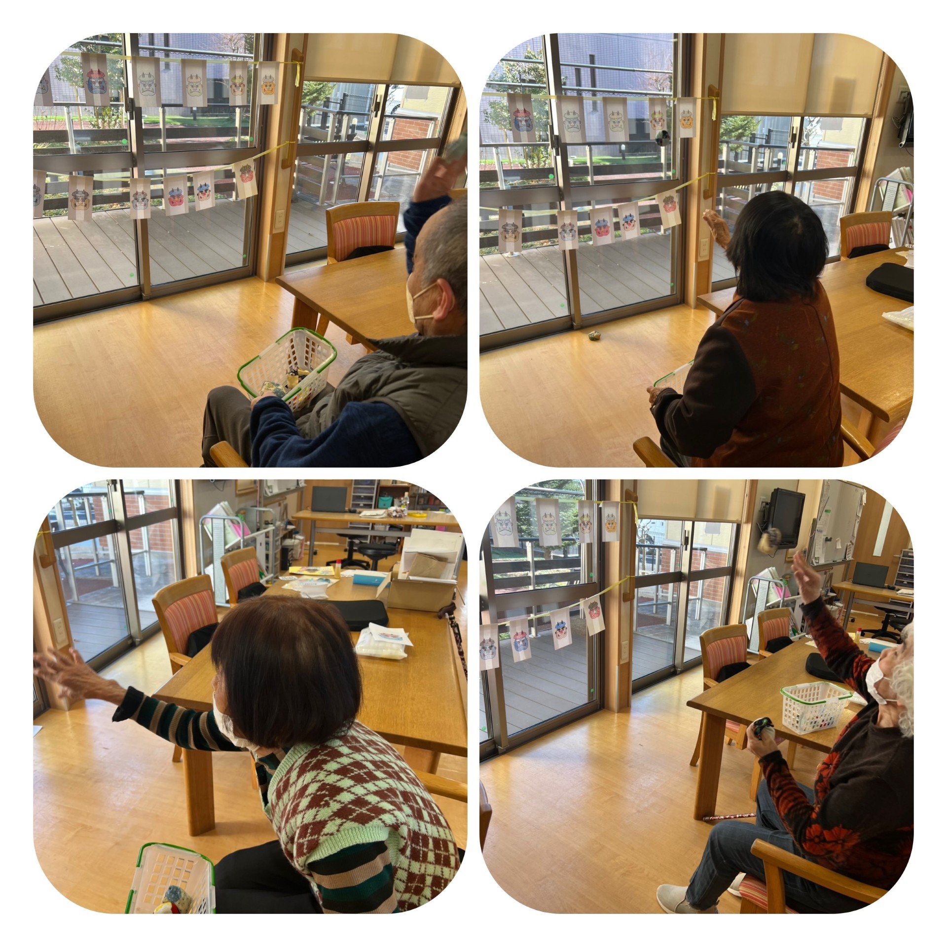 悠々デイサービス 今日のレクリエーション 執筆者: 未設定 日時: 2026/02/03 鬼に目掛けて節分の豆まきしました。 この記事に対して・・・ 1 人が「ええな~!」 と言っています。 #節分2026 一覧へ戻る