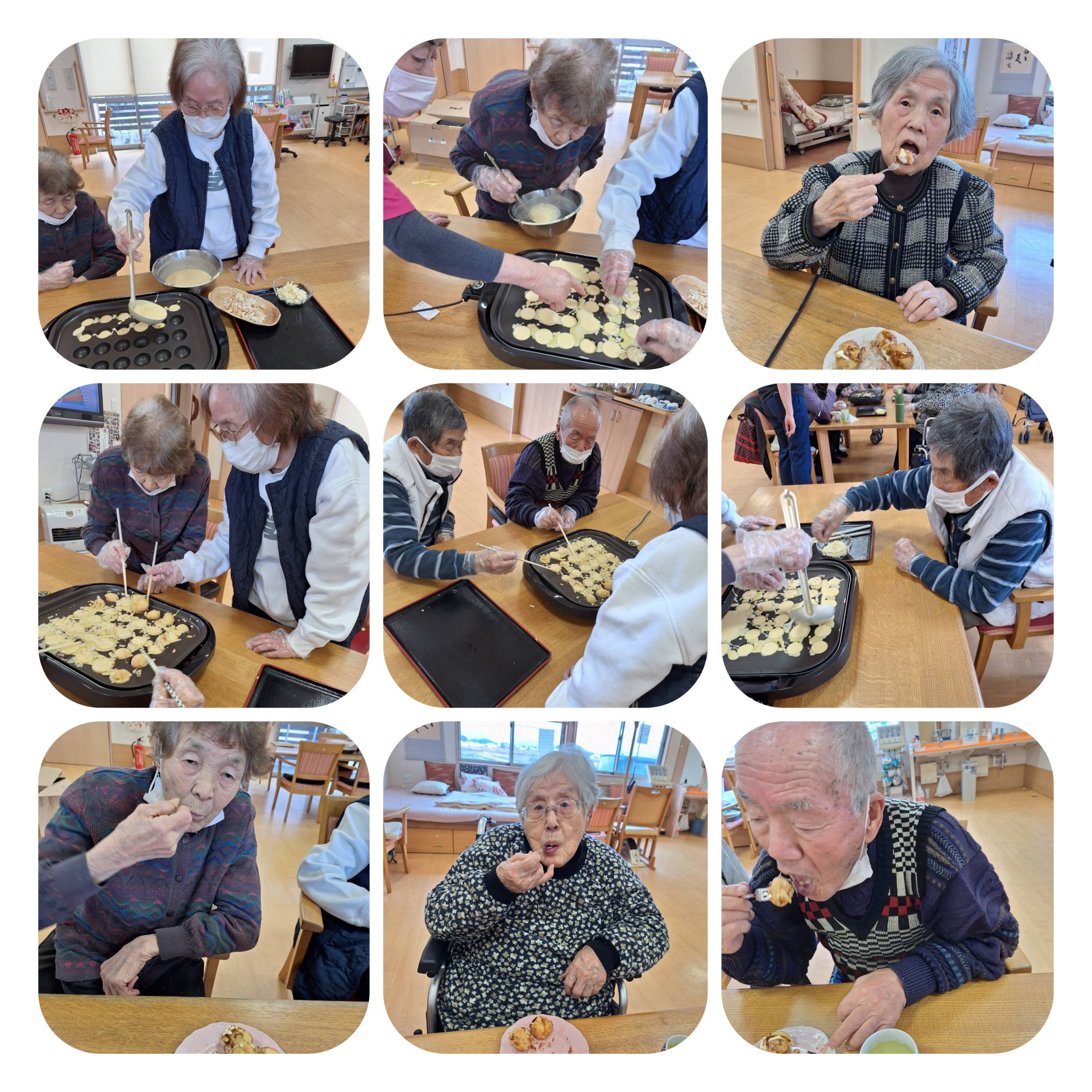 悠々デイサービス おやつづくり 執筆者: デイサービス悠々 管理者 日時: 2026/02/10 今日はたこ焼きをつくりました 定番のおやつですが、みなさん楽しく作ってみえました この記事に対して・・・ 2 人が「ええな~!」 と言っています。 #おやつづくり 一覧へ戻る