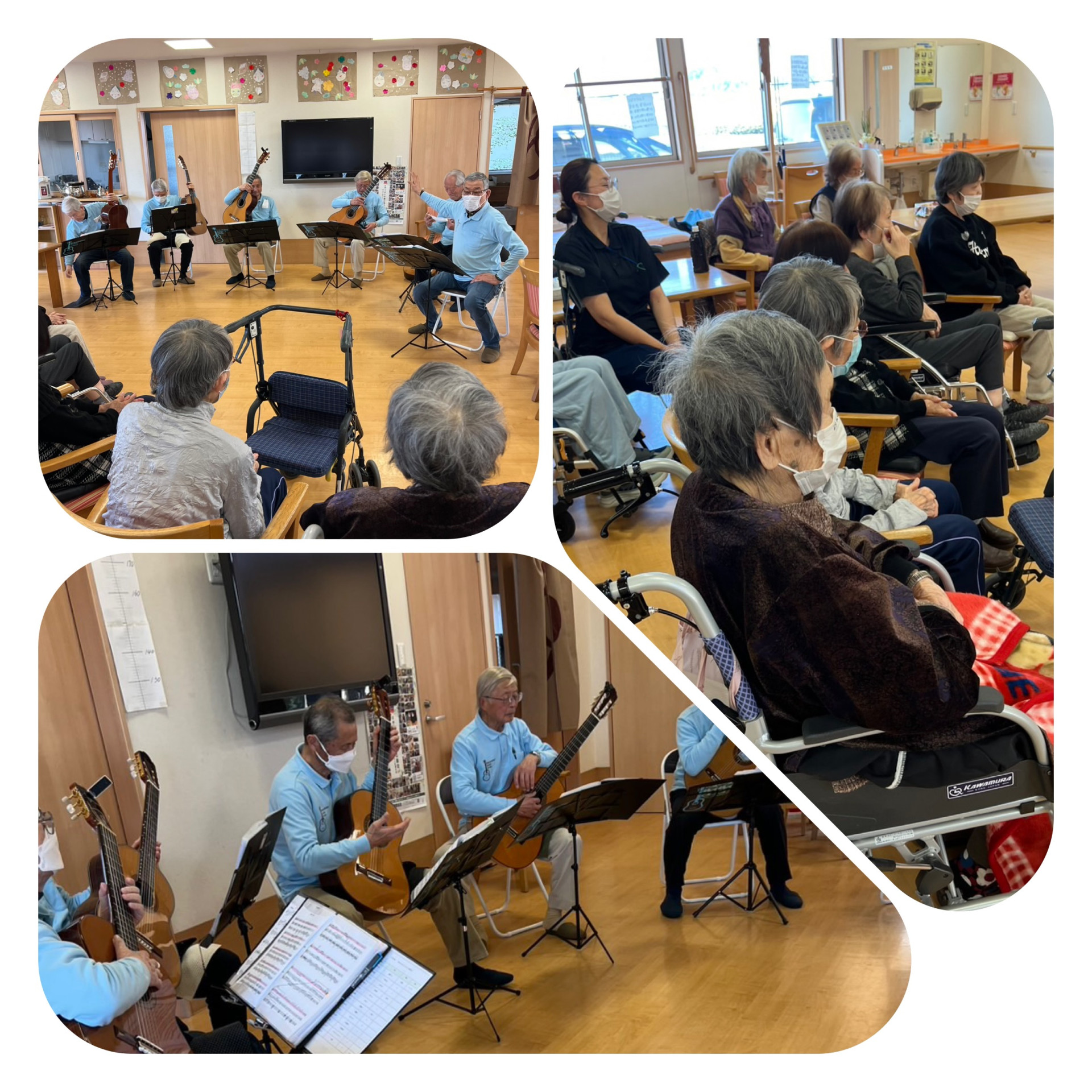 悠々デイサービス ボランティア~白百合の里さん~ 執筆者: デイサービス悠々 管理者 日時: 2026/02/21 素敵なギターの音色のみなさん うっとりでした♪ この記事に対して・・・ 0 人が「ええな~!」 と言っています。 #白百合の里さん 一覧へ戻る
