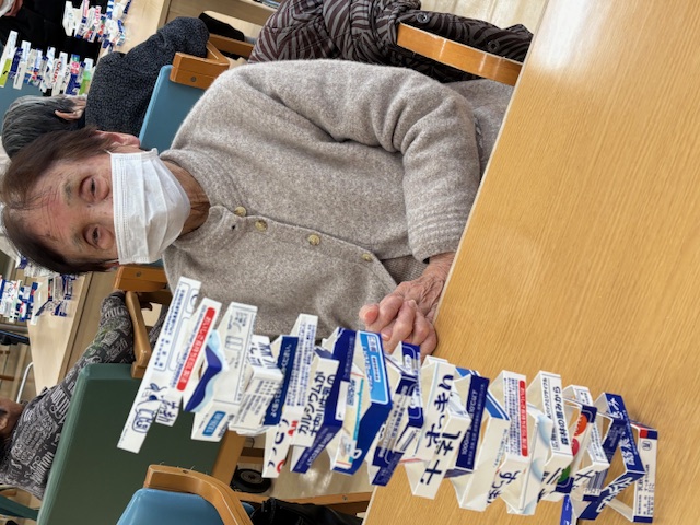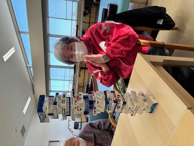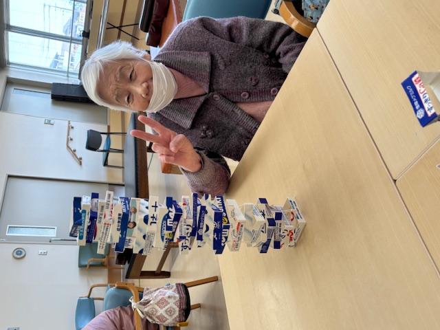 デイサービスセンター タワーゲーム 執筆者: デイサービスセンター 看護職員 日時: 2026/03/05 牛乳パックの輪切りを積み上げるゲームです。皆さん集中して、角度やバランスをとりながら積み上げました。最高40段でしたよ(๑>◡<๑) この記事に対して・・・ 4 人が「ええな~!」 と言っています。 #アクティビティ 一覧へ戻る