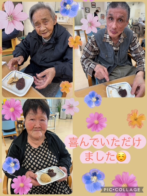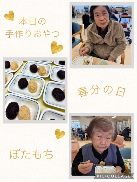 本日は春分の日にちなみ、手作りおやつでぼたもちを提供しました。