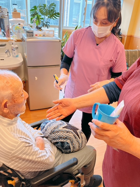 特養(特別養護老人ホーム) 歯科衛生士の事例研修(R8/3/23) 執筆者: 管理栄養士 日時: 2026/03/23 歯科衛生士に口腔内の観察・指導をしてもらいました。 この記事に対して・・・ 1 人が「ええな~!」 と言っています。 #口腔 #歯 #歯科衛生士 #特養 一覧へ戻る